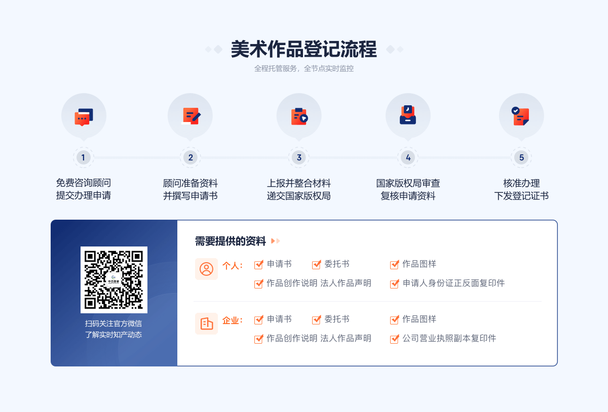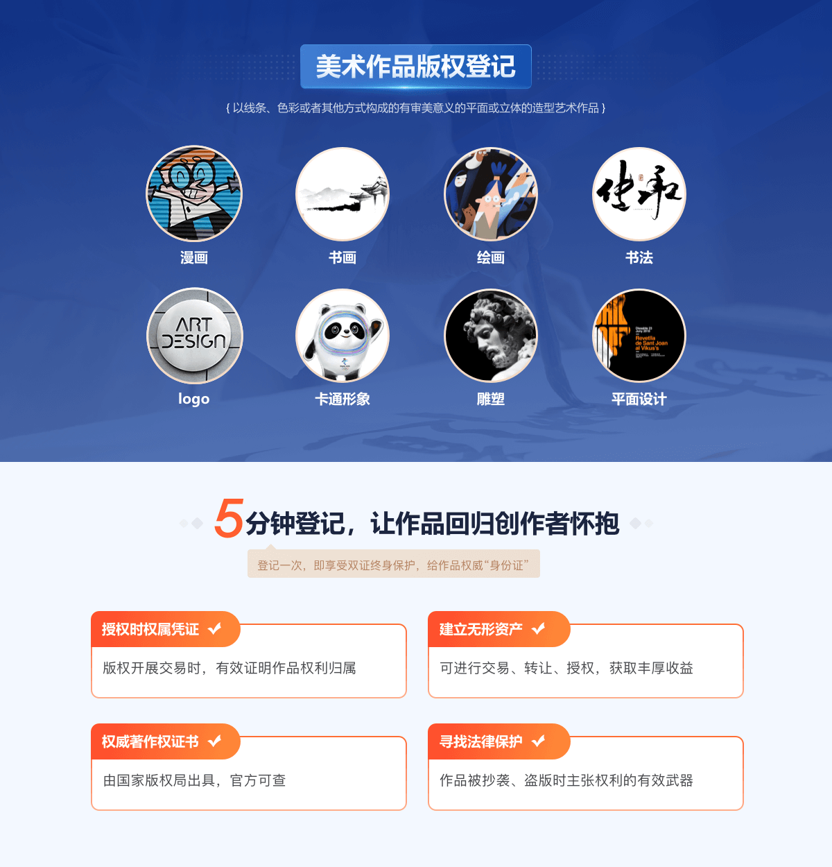 美术作品是指绘画、书法、雕塑等以线条、色彩或者其他方式构成的平面或者立体的造型艺术作品。美术著作权登记:1、申请登记主体作者,创作作品的自然人、法人或其他组织。其他著作权人,包括通过转让、承受、继承等继受取得著作权的权利人。申请人可直接申请登记或委托代理人办理申请。办理作品自愿登记手续申请书。