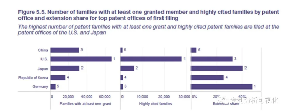 至少一件授权:Families with at least one grant,即同族中至少有一件专利被授予专利权,反映了所涉及技术的新创性);