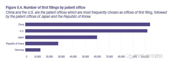 人工智能领域全球主要受理局受理的首次申请数量排名