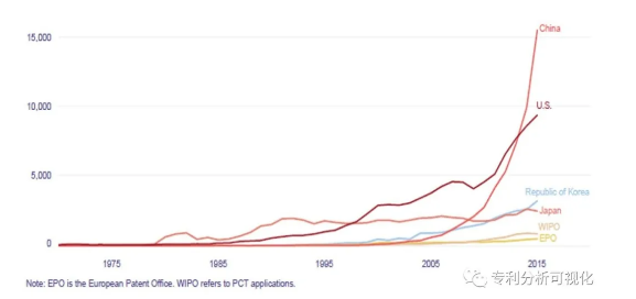 人工智能领域全球主要受理局受理的首次申请数量变化