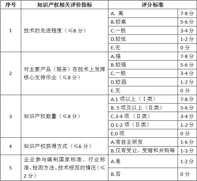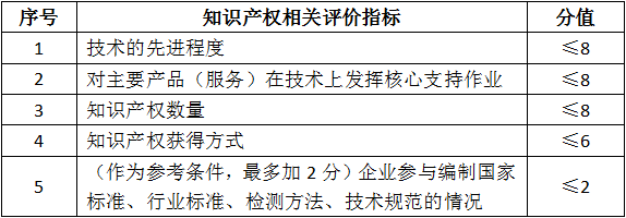 其中知识产权的评价指标将从以下几个方面进行评分: