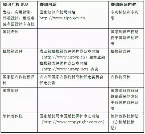 (2)知识产权有效性的查询验证方式: