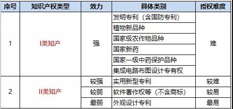高企认定中将知识产权划分为I、II两类,除传统的发明、实用新型、软件著作权等之外,将国防专利、国家新药、国家一级中药保护品种等也纳入进来,利好于涉农、涉医药等特殊行业的企业。